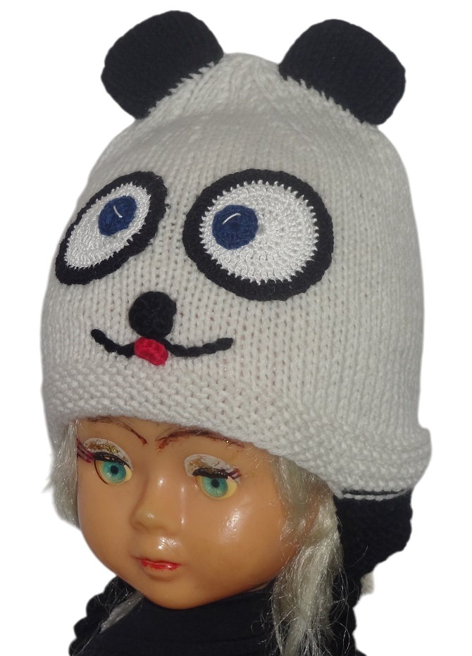 Megzta kepurė su raištukais vaikui Panda 2-3 m.