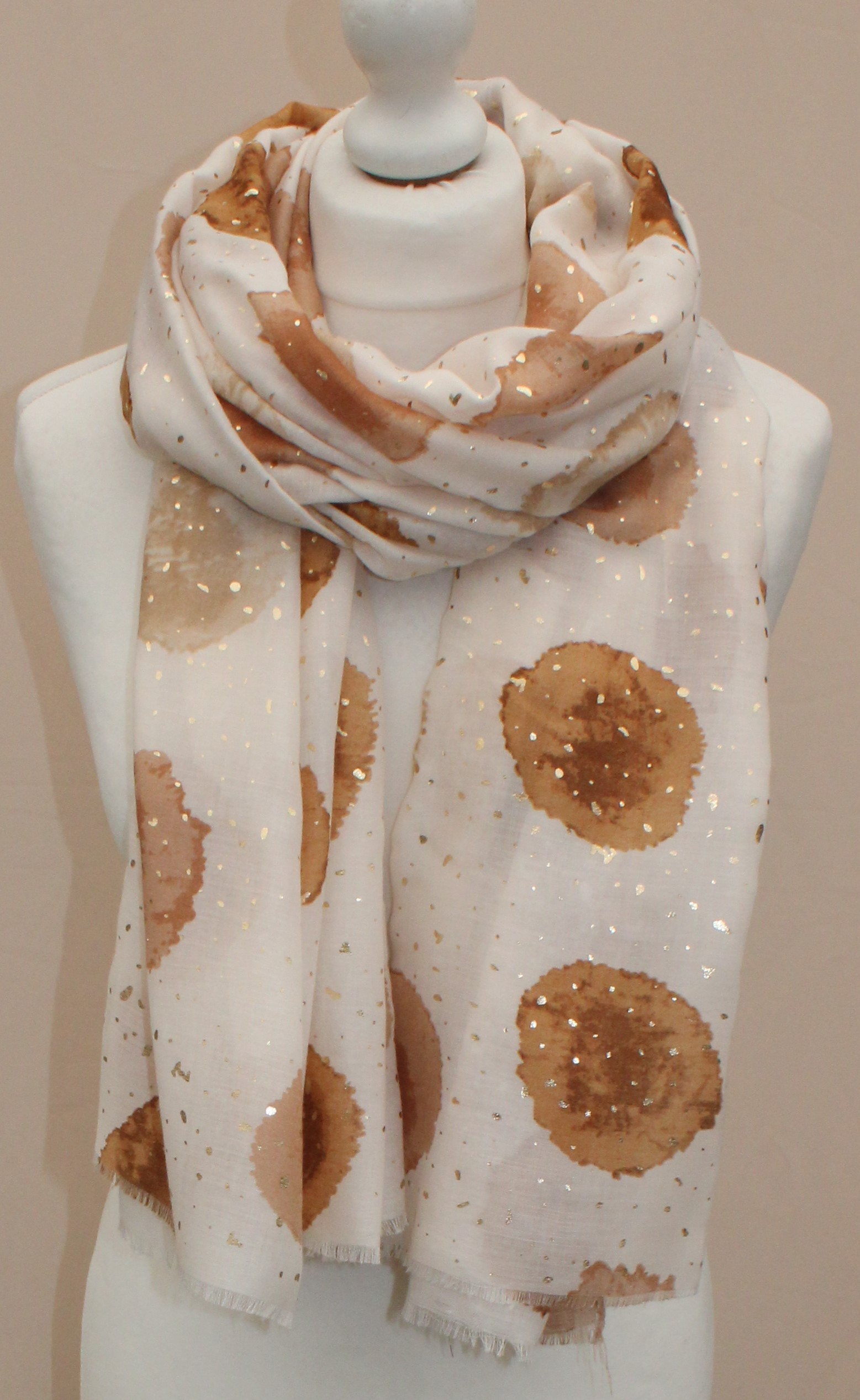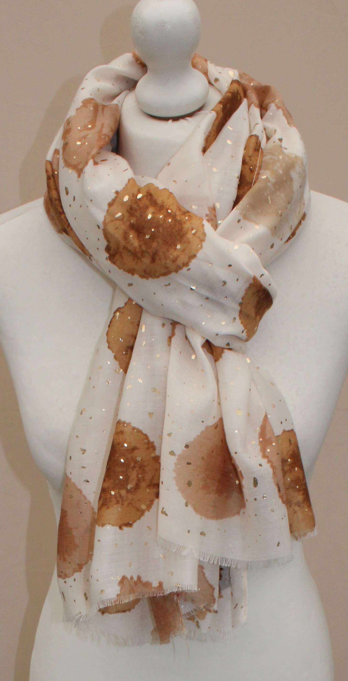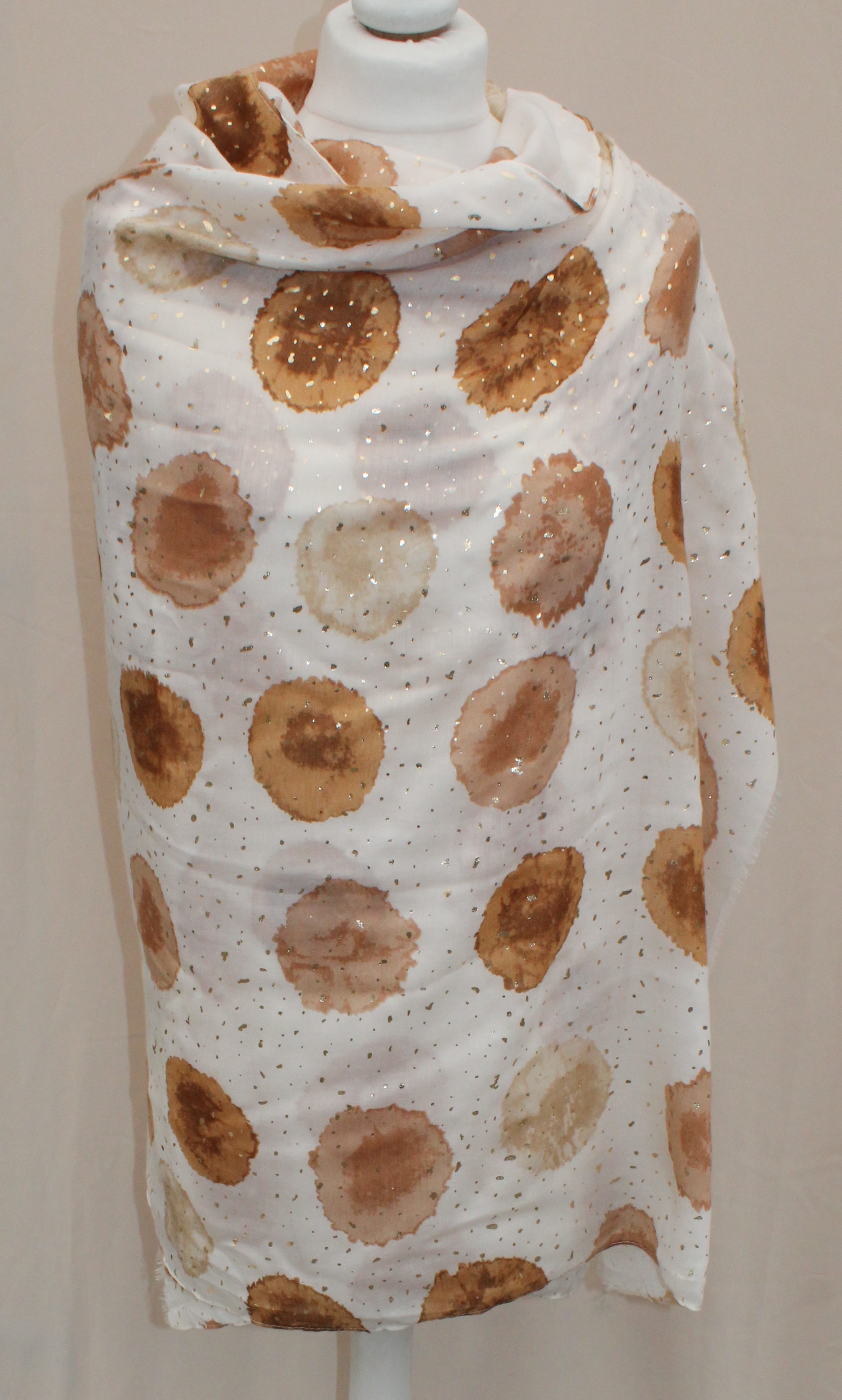 Plonas didelis baltas su rudais taškais šalikas s839