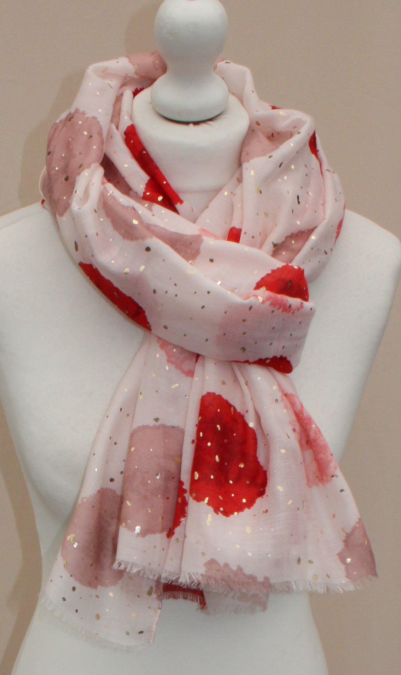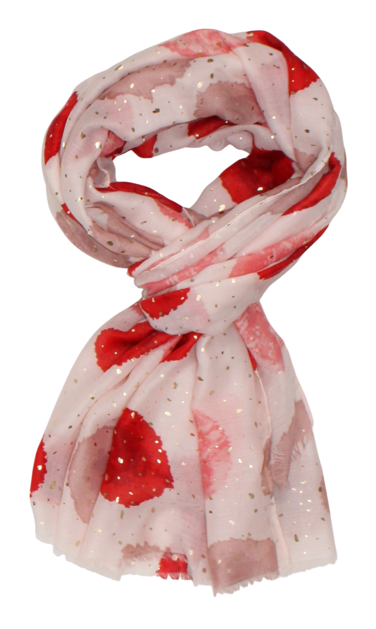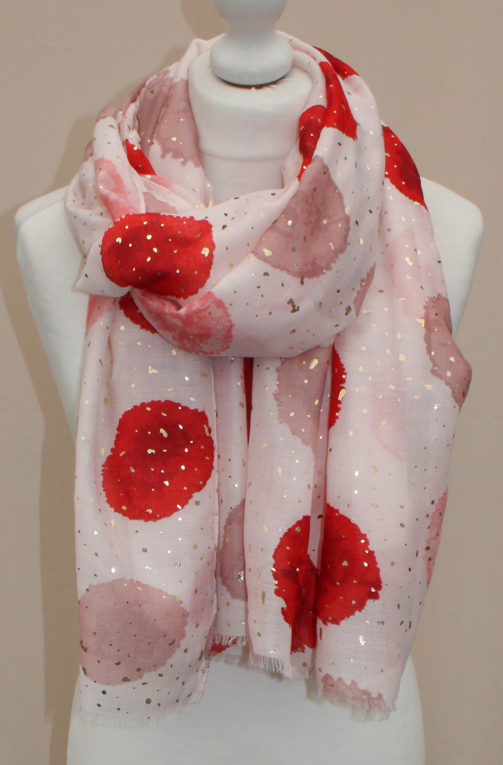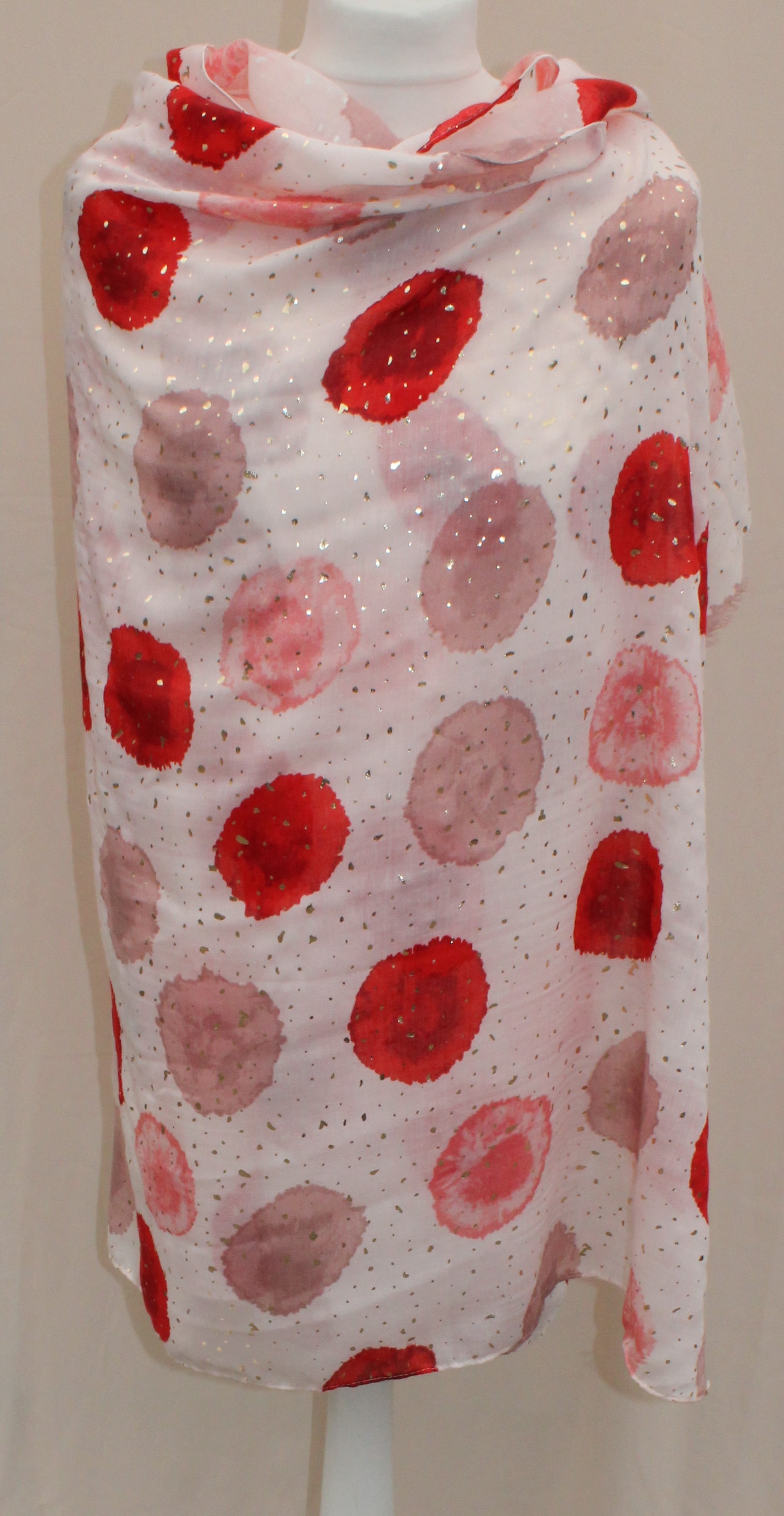 Plonas didelis baltas su raudonais taškais šalikas s841
