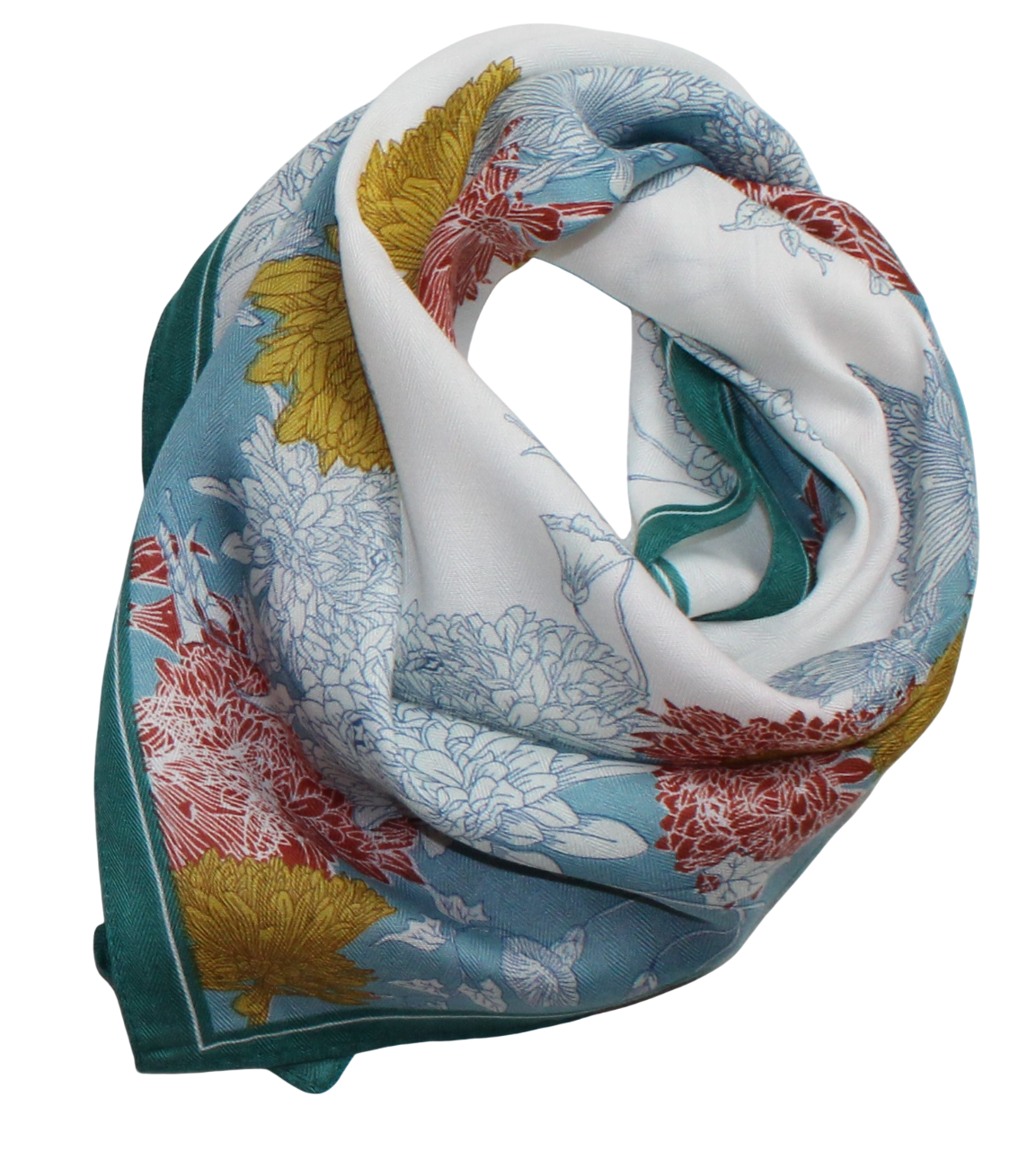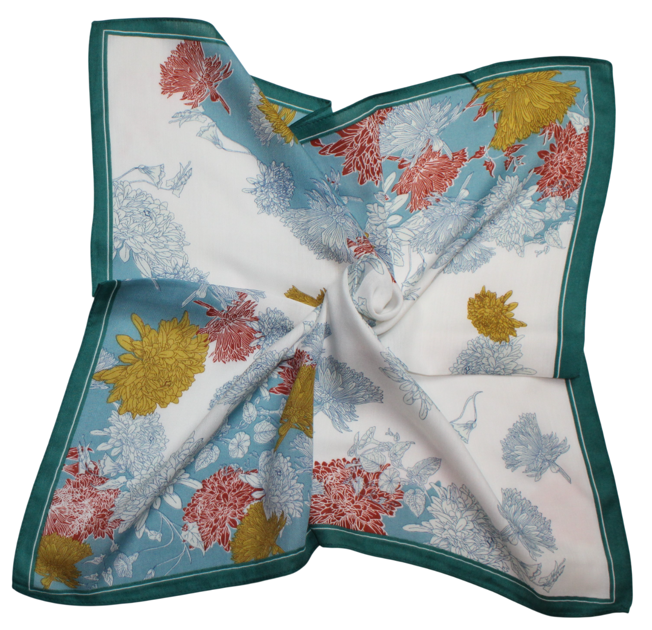 Medvilninė skarelė, balta žydra, gėlės s912
