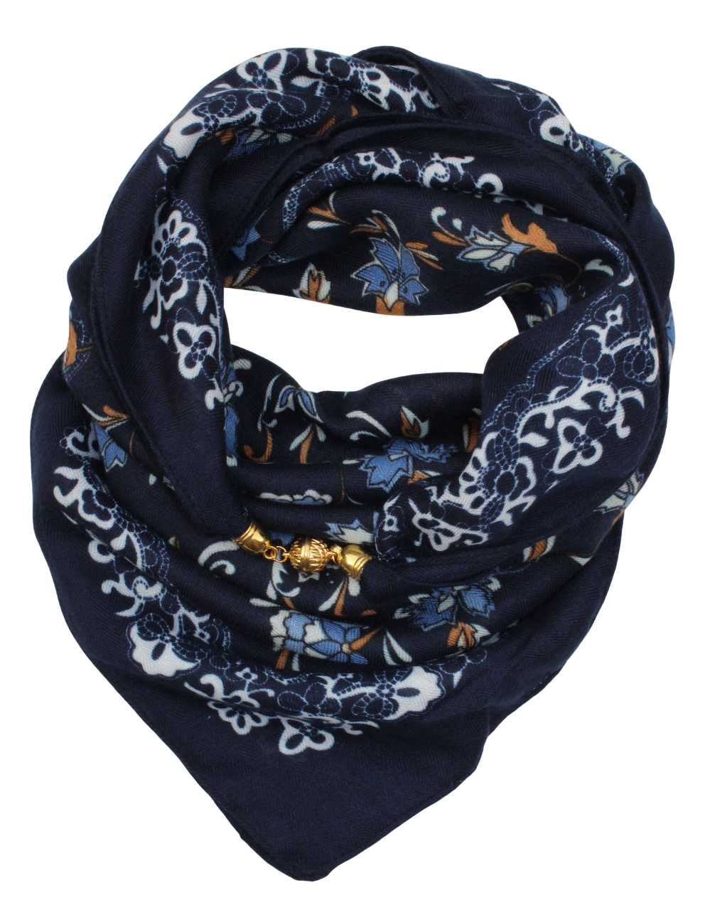 Medvilninė skarelė su magnetiniu užsegimu, tamsiai mėlyna s941