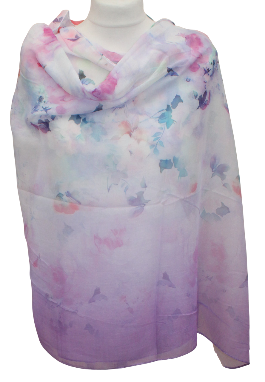 Plonas mikštas violetinis pereinančios spalvos šalikas S815