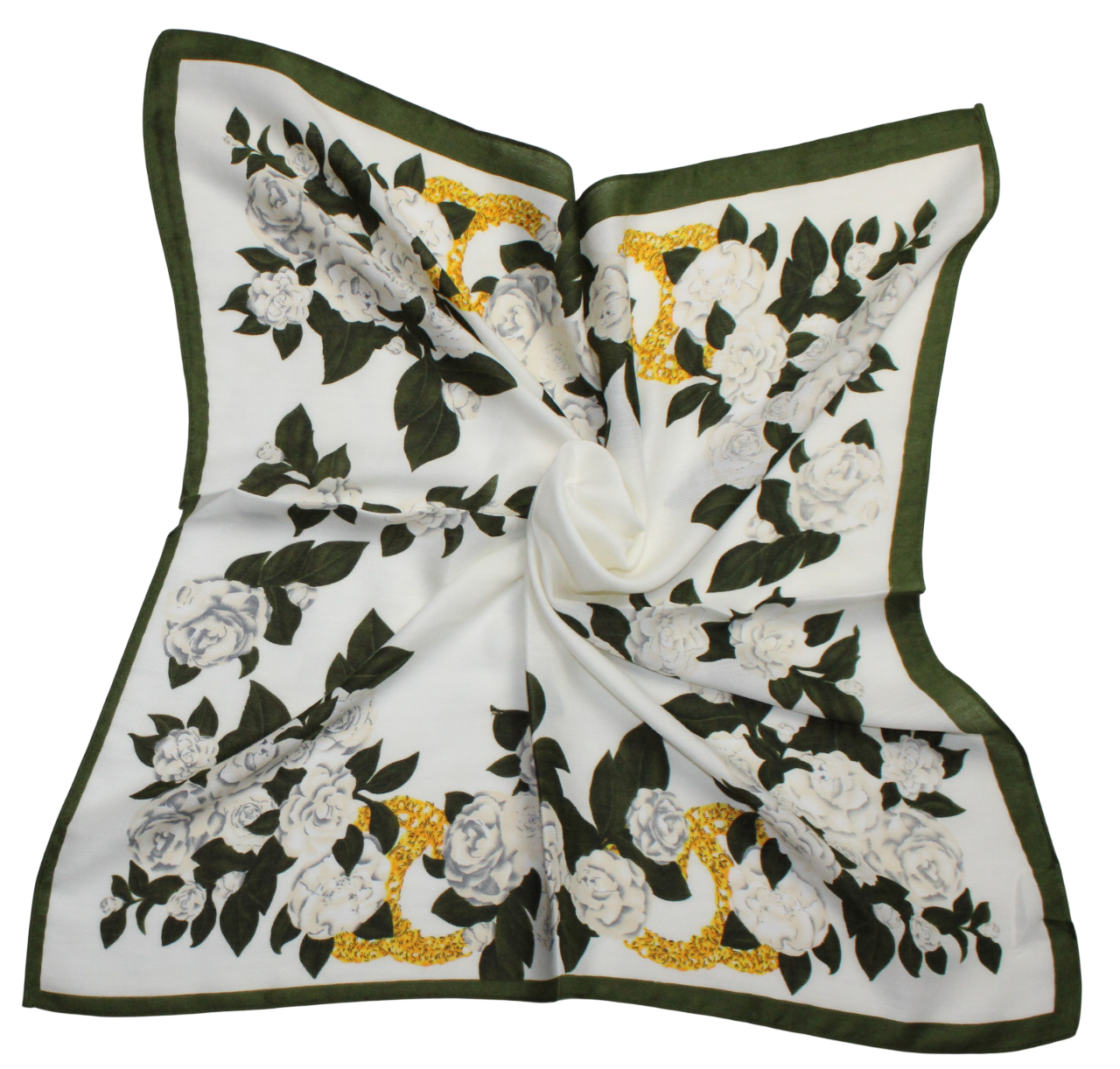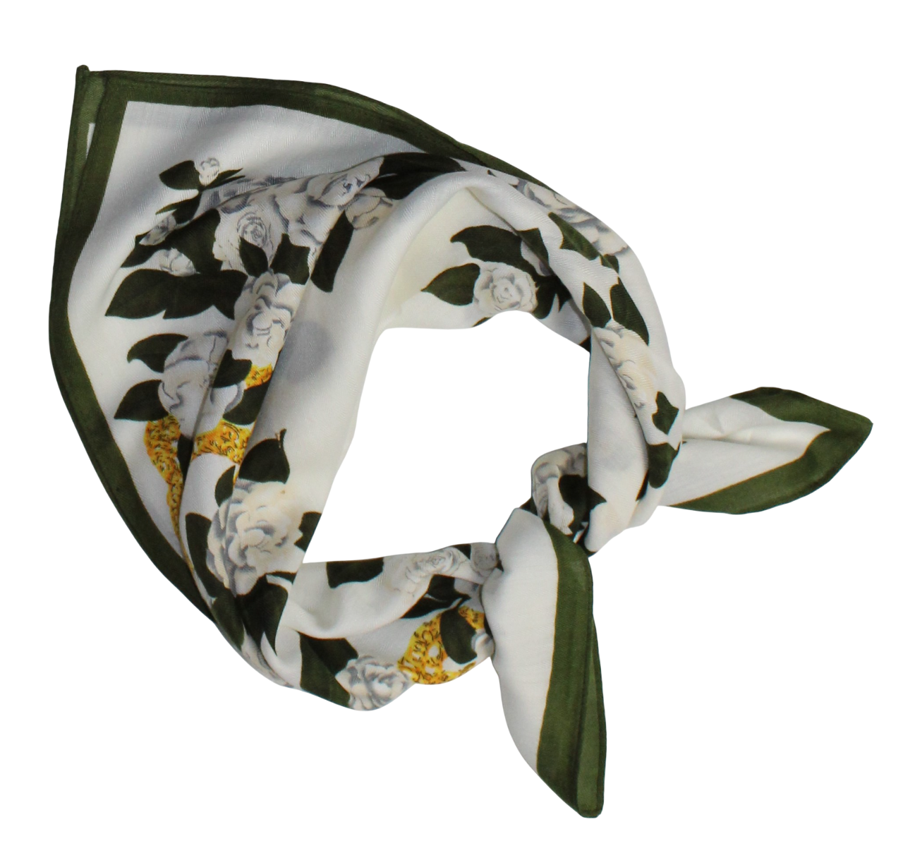 Medvilninė skarelė, Balta su žaliomis gėlėmis s923