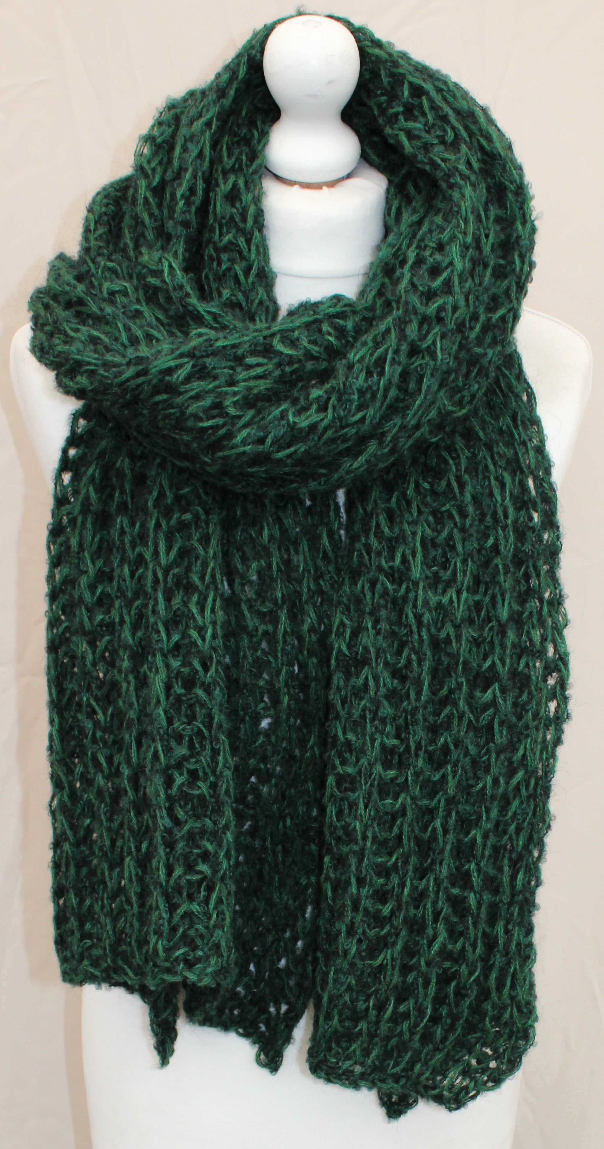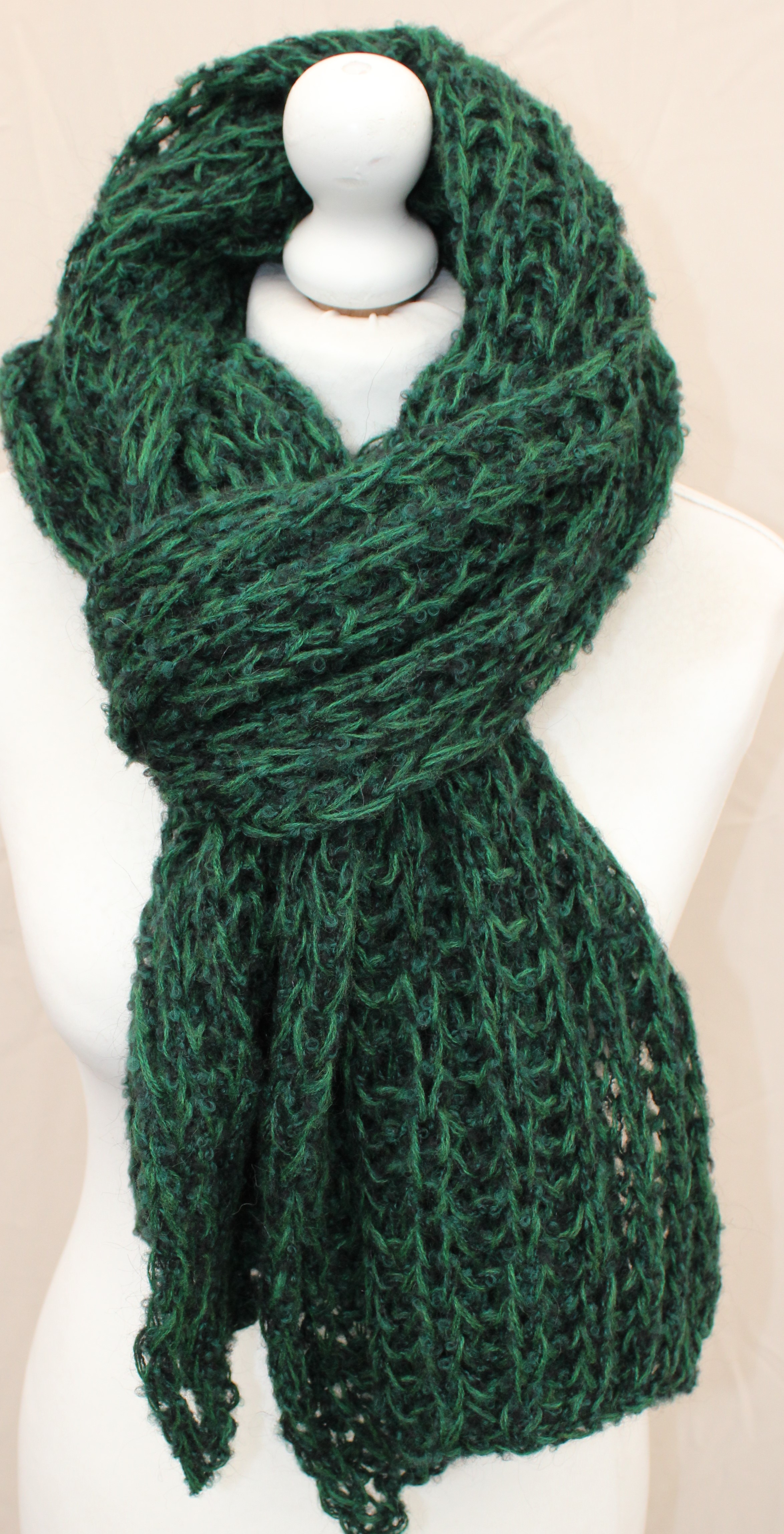 Rankų darbo ilgas megztas šalikas su vilna iš dviejų skirtingų siūlų.
