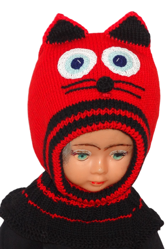 Megztas merino vilnos šalmukas vaikui Raudonas katinas 3-5 m.