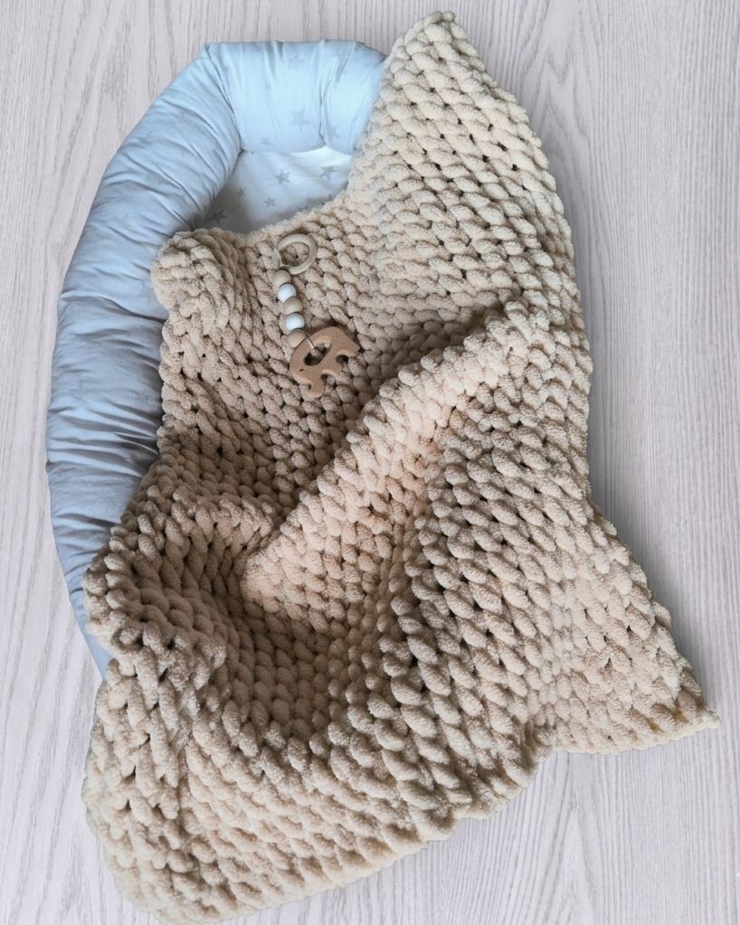 Rankomis megztas vaikiškas pledukas, smėlio spalvos 60 × 70 cm
