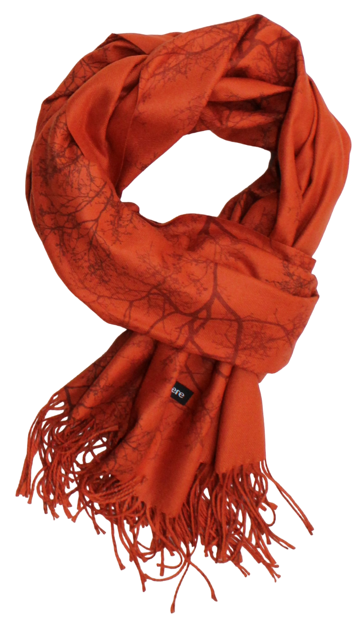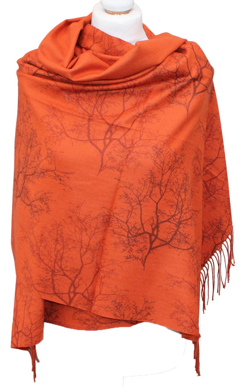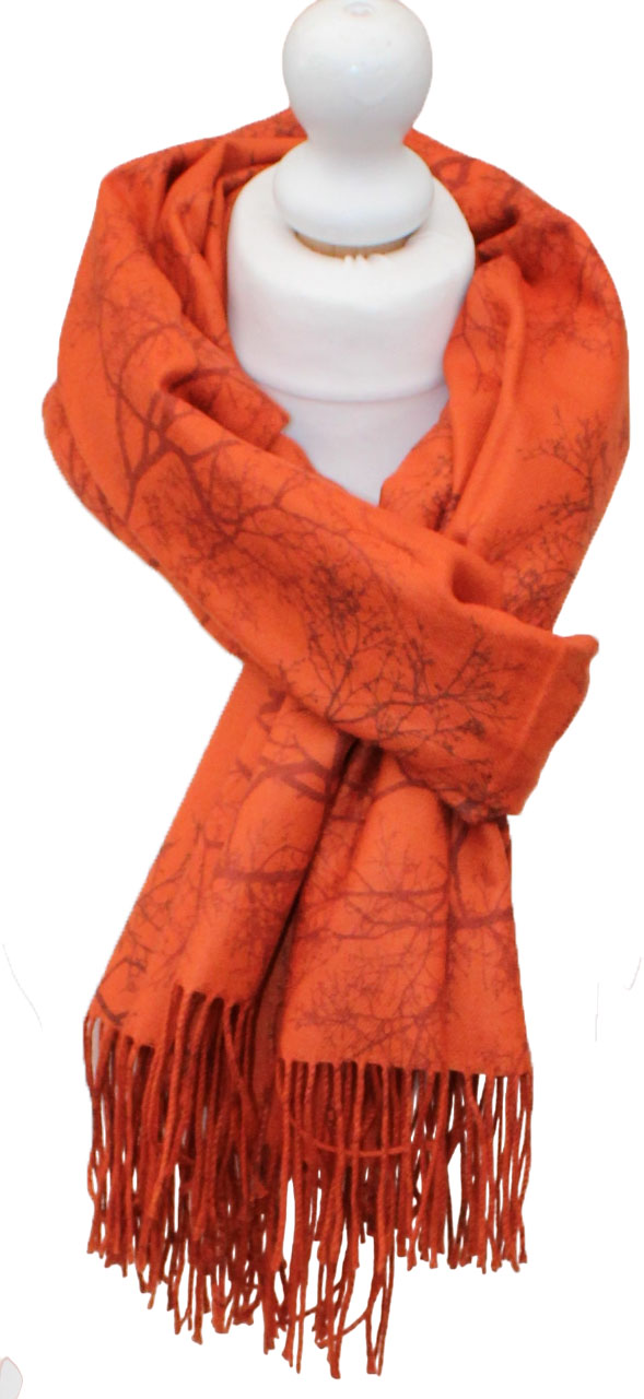 Vidutinio storumo šalikas su medžių ornamentu, raudonai rudas (S358)