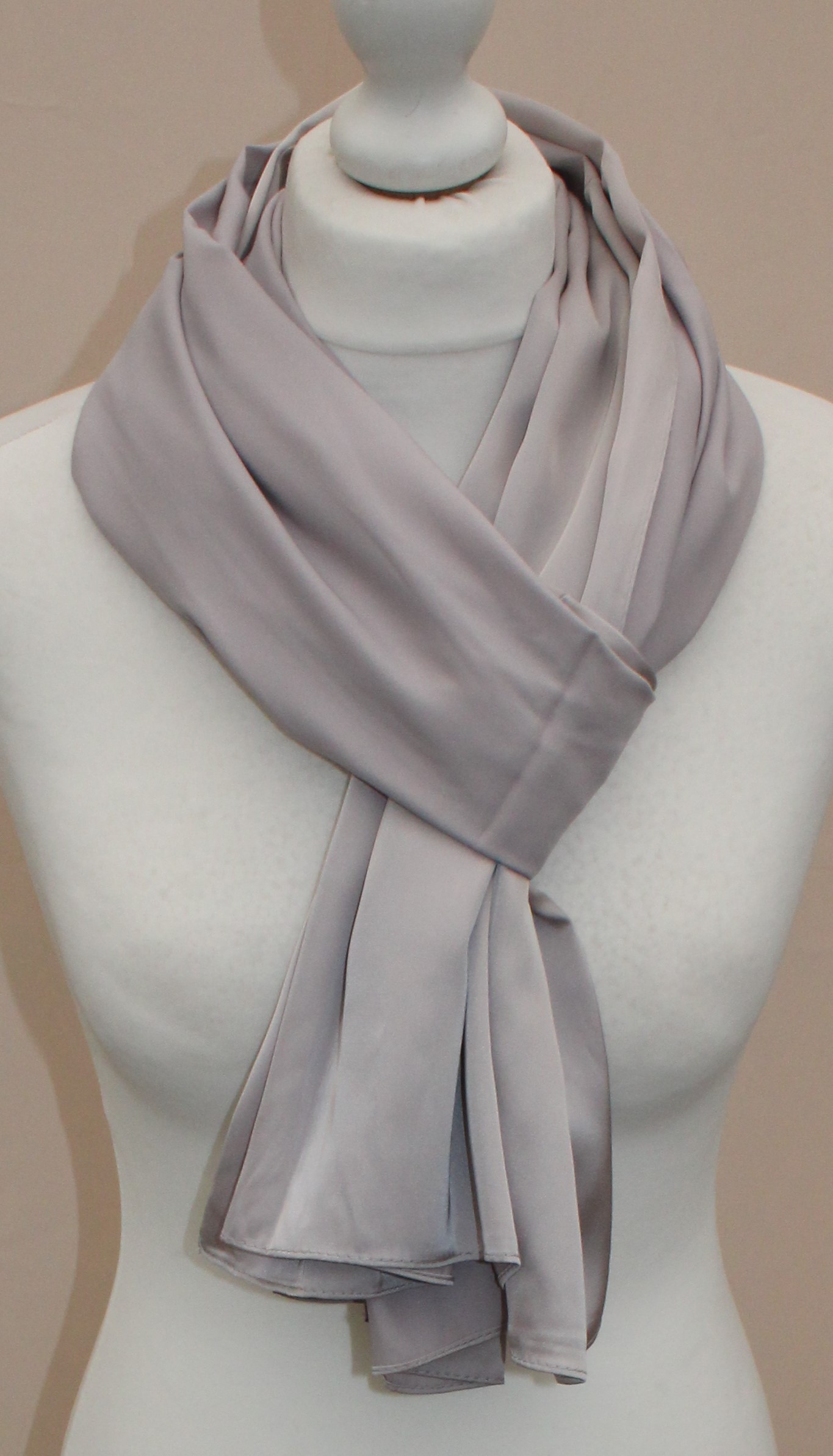 Vienspalvis plonas šalikas su šilku. Viena pusė blizgi, kita - matinė.
