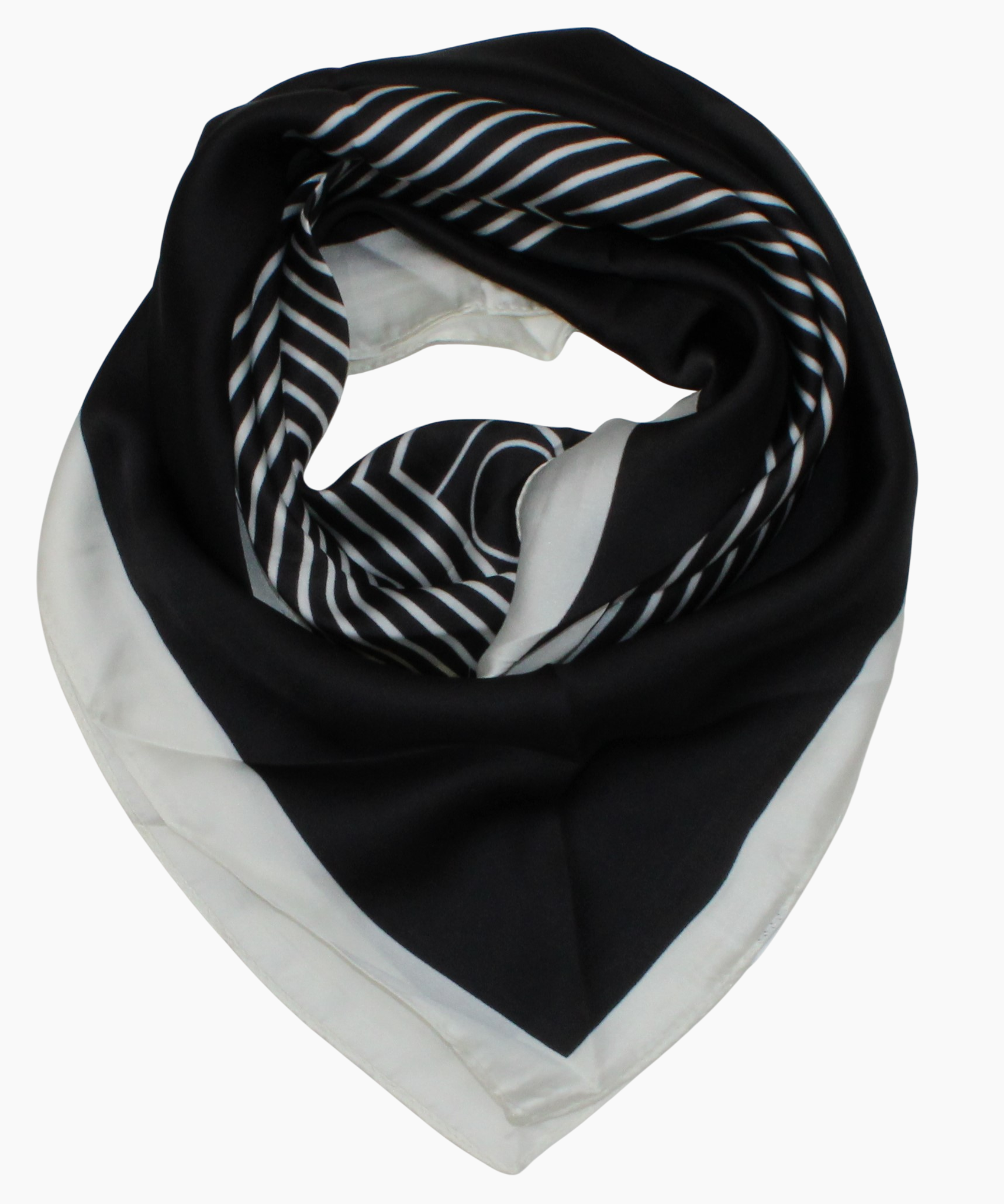 Praturtinkite savo garderobą šia elegantiška ir funkcionalia skaryte. Jos išskirtinis dizainas – griežtos, koncentrinės baltiškos linijos juodame fone – kuria modernų, optinį įspūdį.