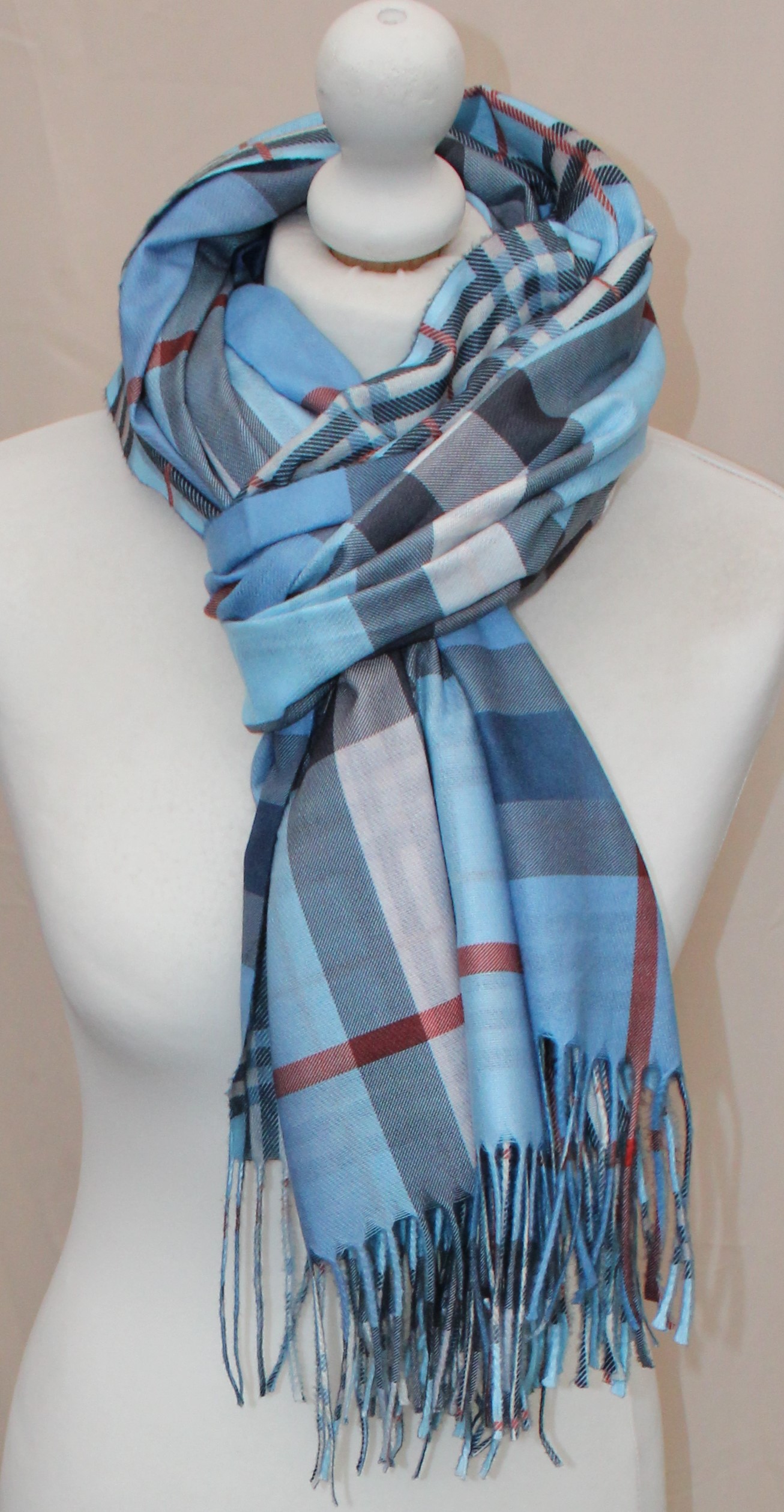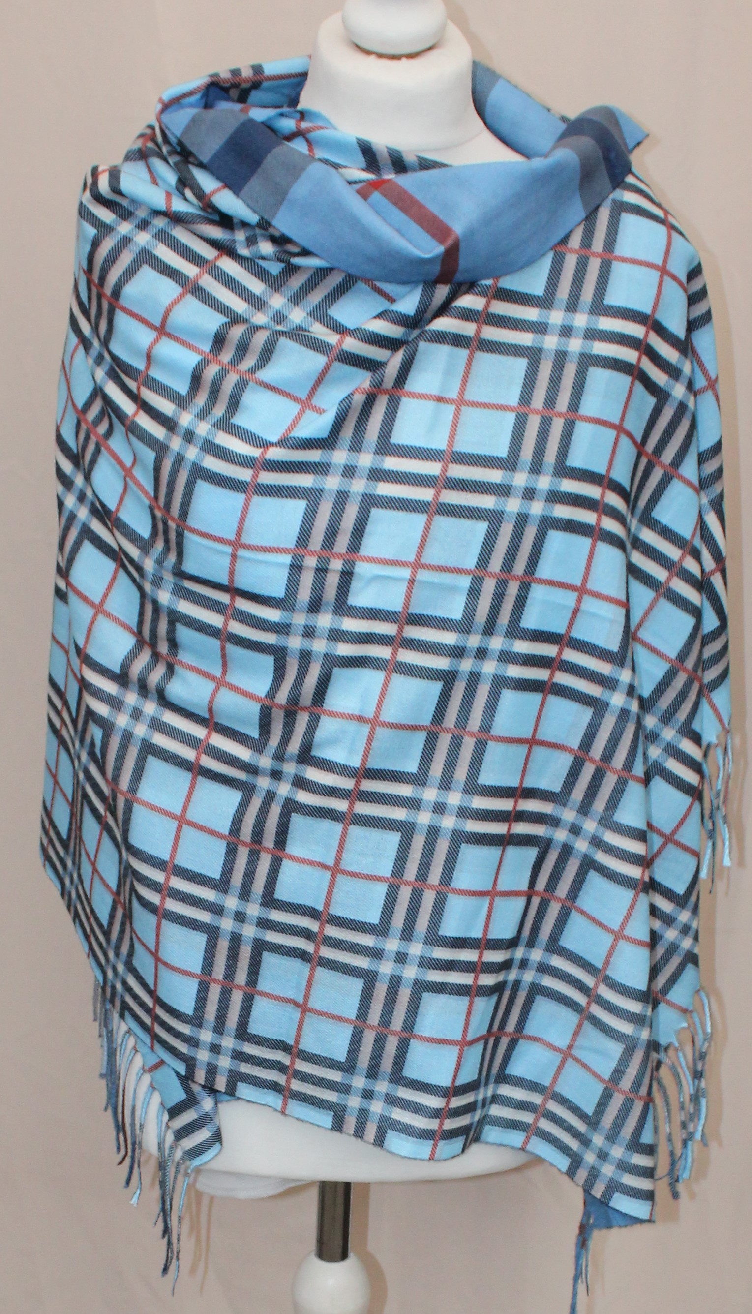 Pereinančios spalvos languotas mėlynas dvipusis šalikas s858