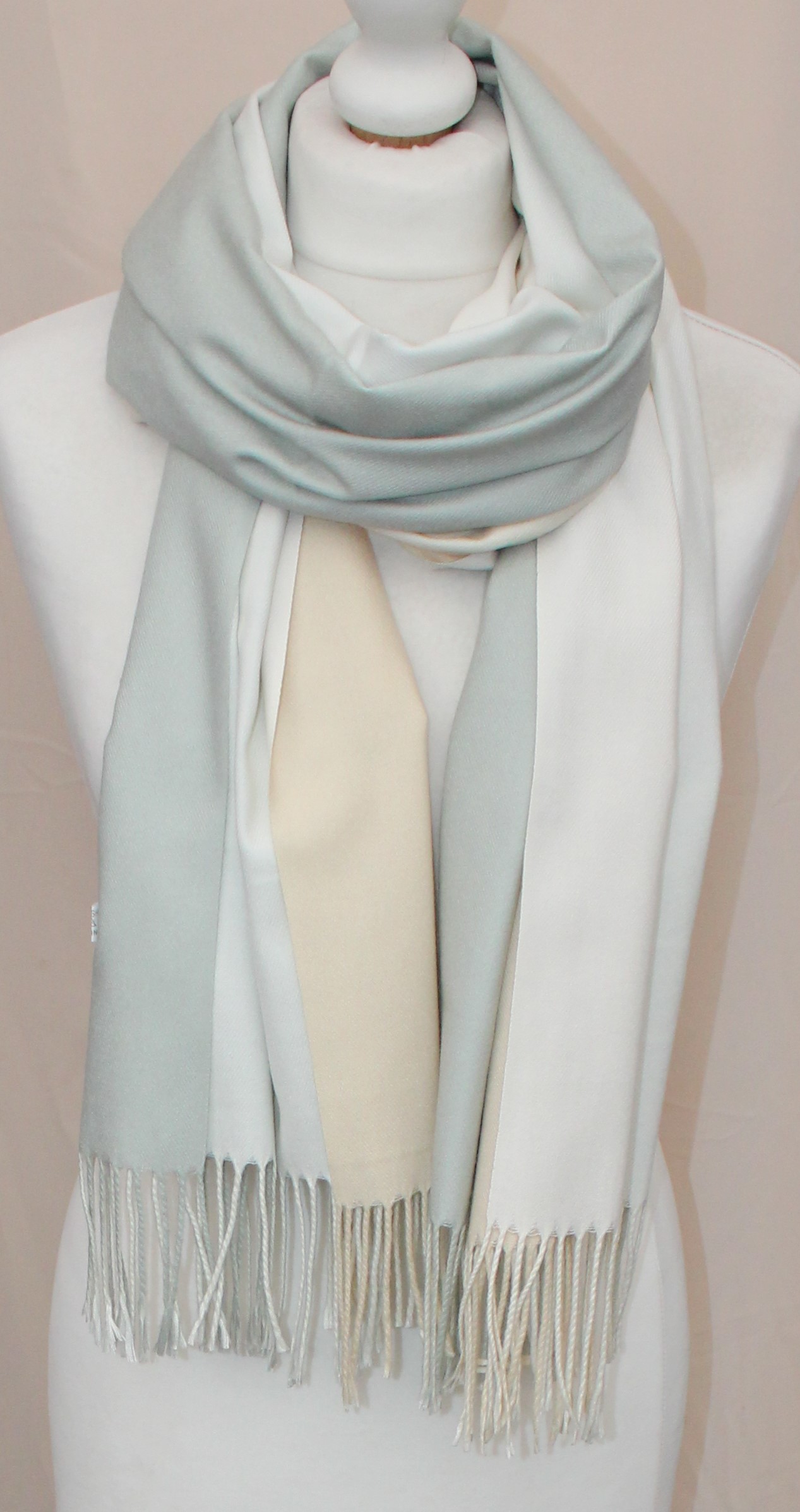 Pereinančios spalvos žalsvai gelsvas dvipusis šalikas s846