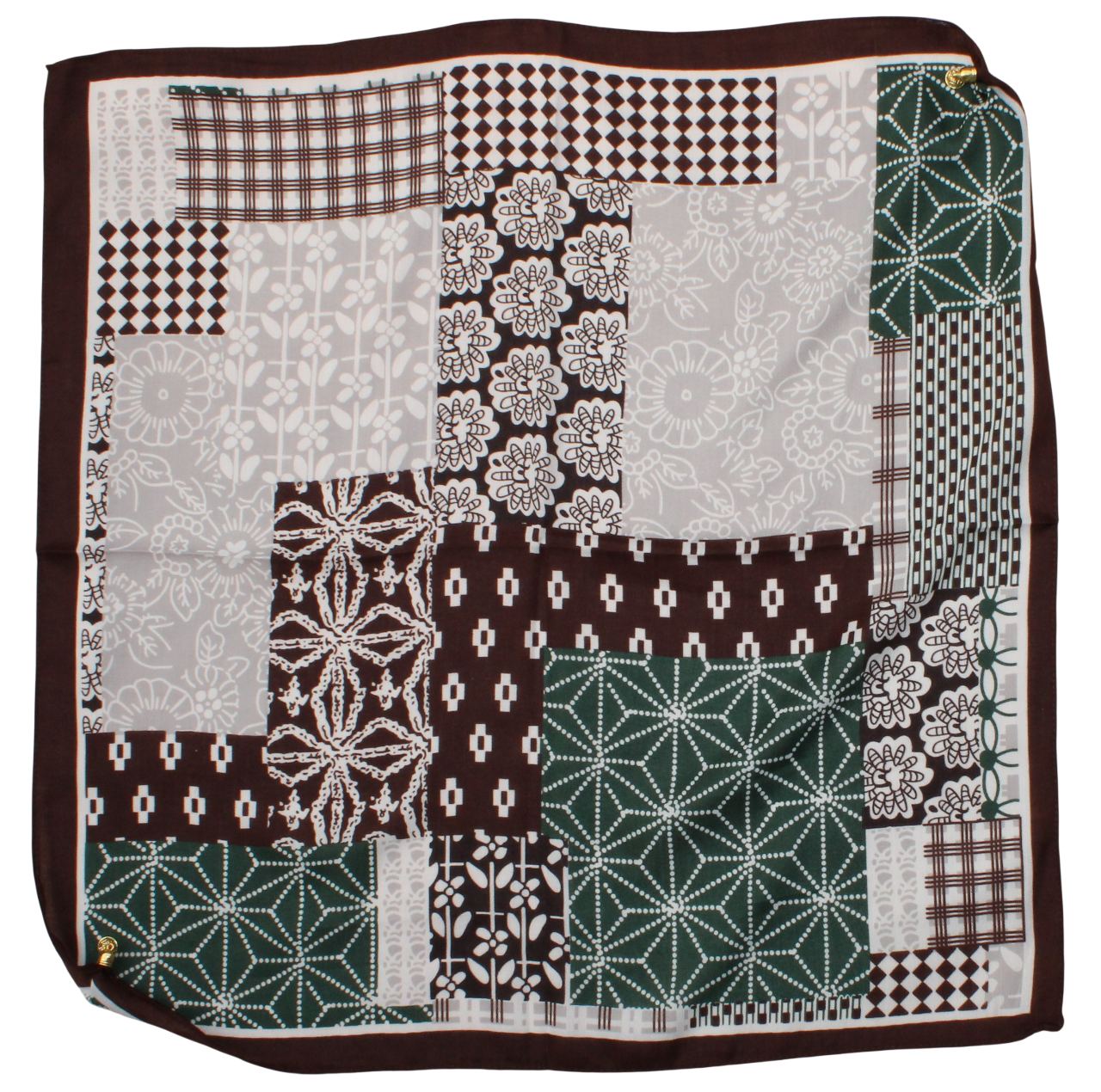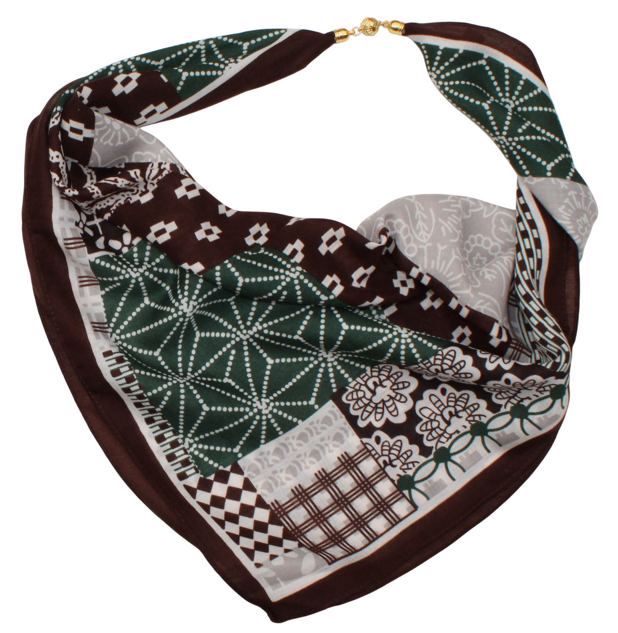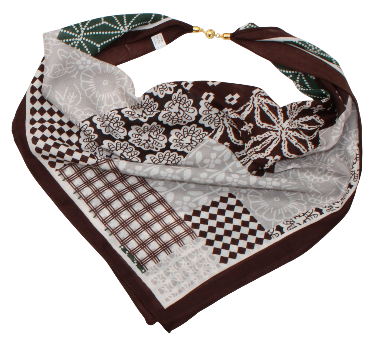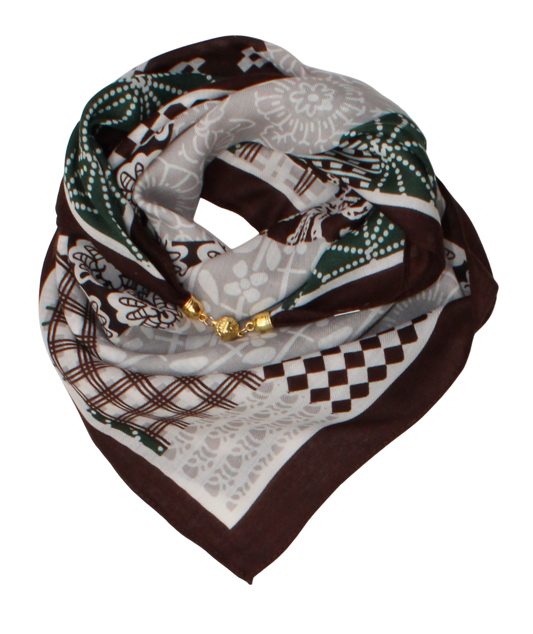 Medvilninė skarelė su magnetiniu užsegimu žaliai rudas s937