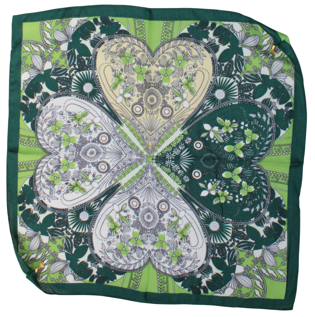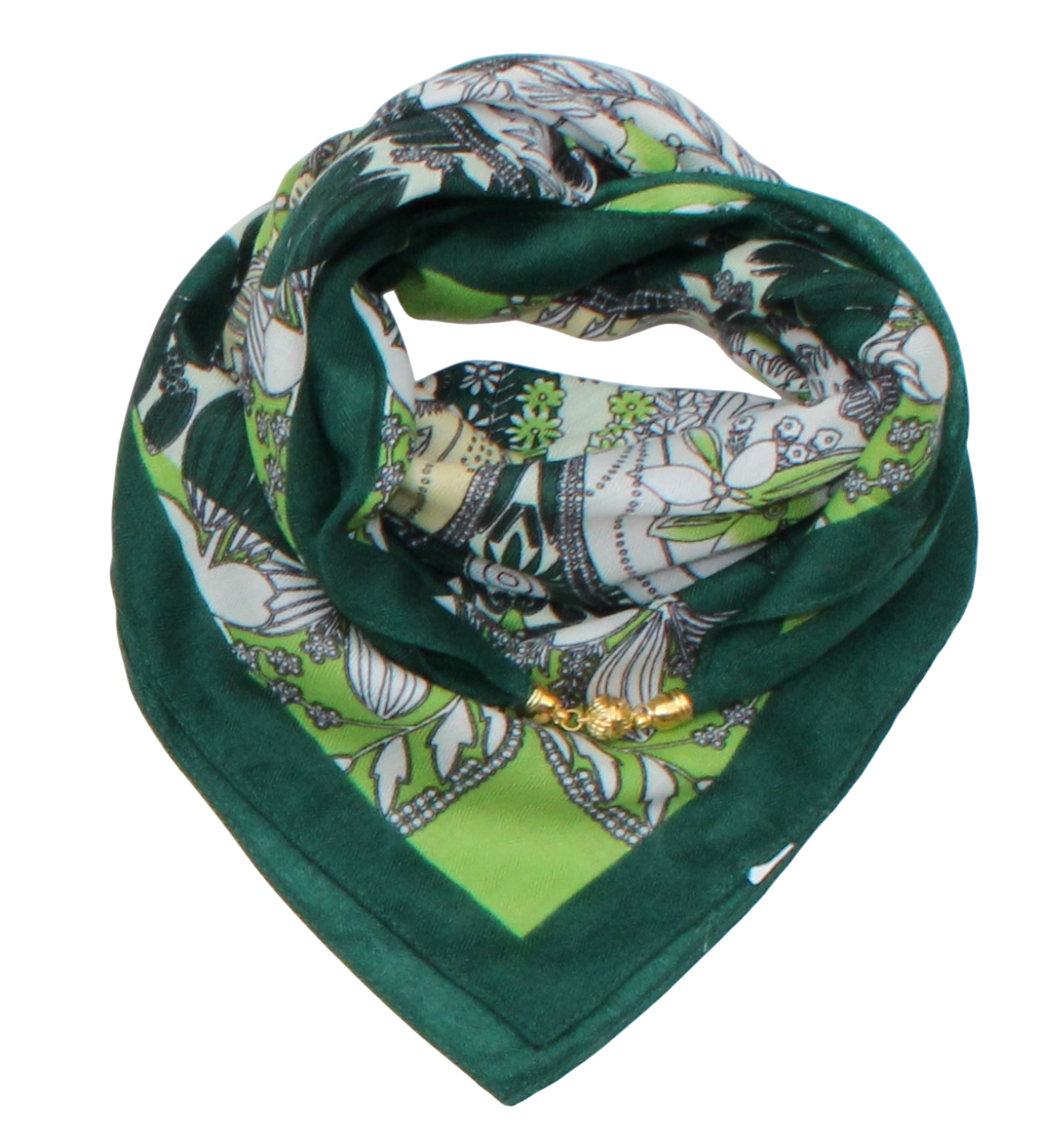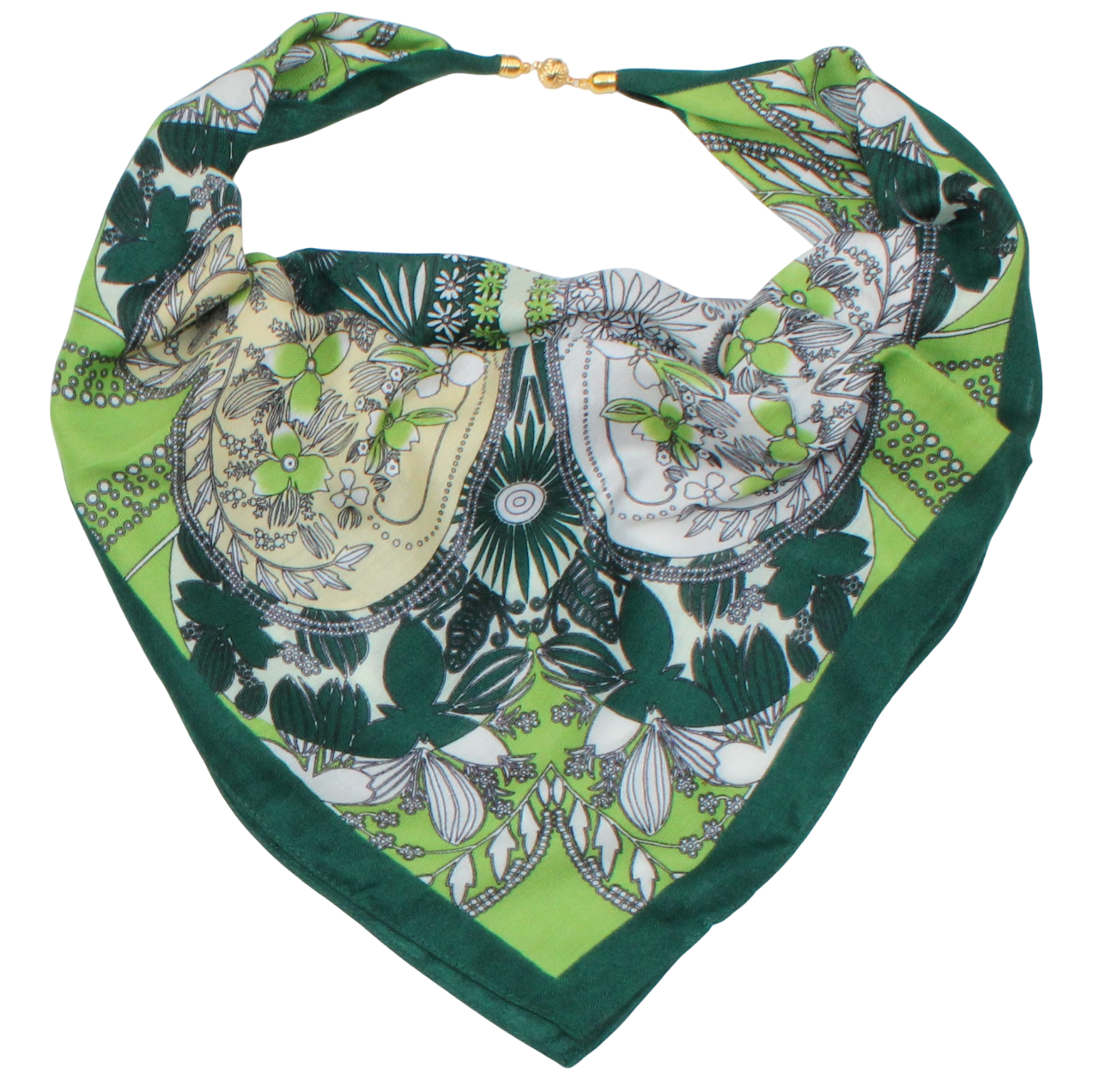 Medvilninė skarelė su magnetiniu užsegimu žalias keturlapis s939